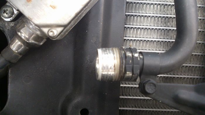 コンデンサー側のフィッティングが死亡しました・・・ よってコンデンサーも交換です。 国内在庫はこの際期待しないことにします。