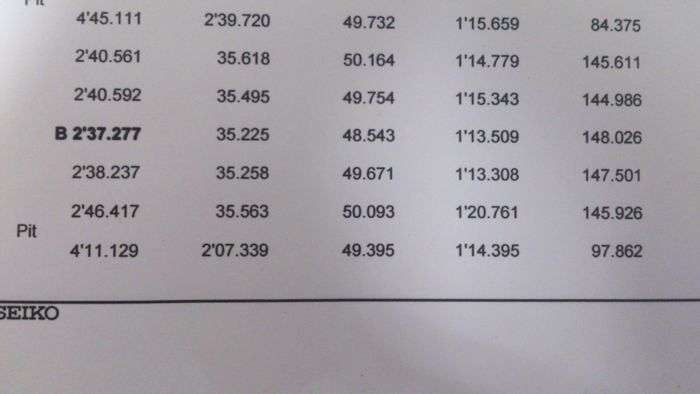 こんな、毎LAPのセクタータイムまで判っちゃうデーターまで貰えて、ベストは2’37.277 やっぱこれは参加中最遅タイム ストレートなんかどうやっても150km/h出てない(笑) 途中で、F1のDRSみたいにミラー畳めばちょっとは伸びるかなって試そうとしたけどスイッチみたら電格付いてませんでした・・・